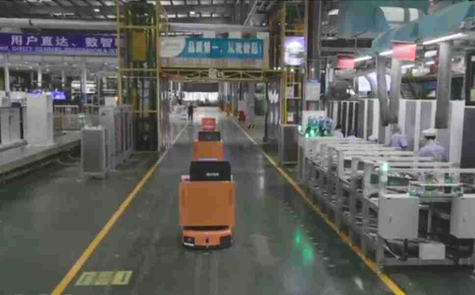 为车载冰箱物流配送打造的智能解决方案,,,包含产中物流通过潜伏举升AMR搬运至线边,,产后成品物流智能仓储,,流程包含产中物流智能齐套入库,,,,线边安灯叫料AMR智能配送至线边,,,成品入库、、、、出库,,,,通过无人堆高车机器人,,智能仓储管理替代人工作业管理,,,实现更高存储、、、、更高效率、、、更具柔性化的解决方案。。。